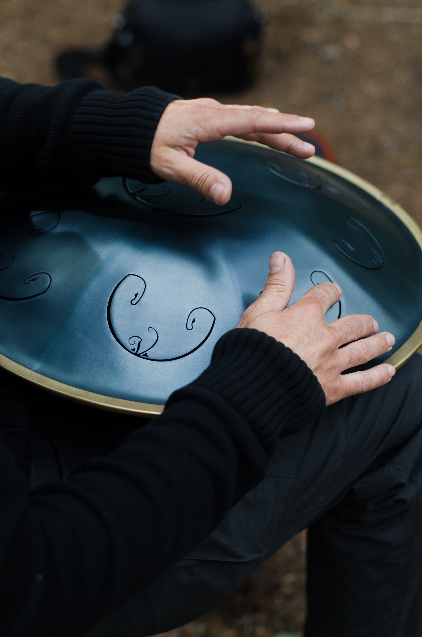 Among all drums and handpans, it is the only drum that has a large Ding with 7 tuned notes as well as 8 tongues in a circle with a complete harmony of 4-7 tones on each tongue.